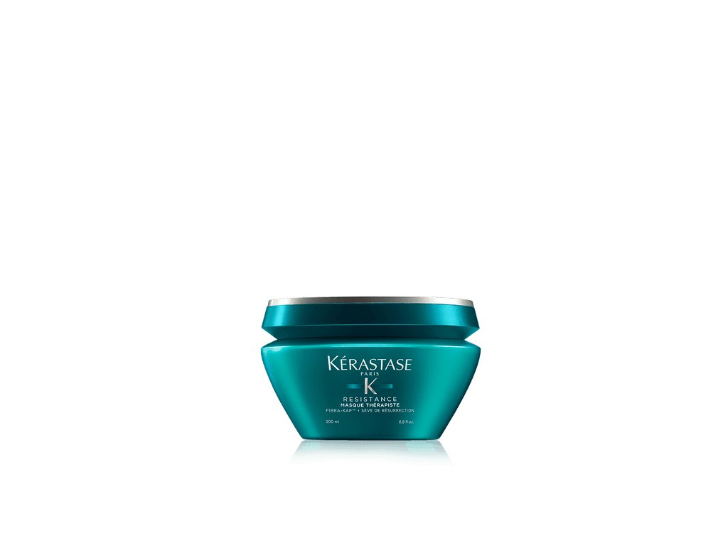 Kérastase Resistance Masque Thérapiste (200 ml) je luxusní maska z řady Résistance, určená pro velmi poškozené a oslabené vlasy, které potřebují hlubokou obnovu. Její krémová textura proniká do vlasového vlákna a pomáhá obnovovat jeho pevnost a pružnost od kořínků až ke konečkům. Díky technologii Fibra-KAP™ s aminokyselinami, gluko-peptidy a výtažky z rostliny Résurrection podporuje regeneraci vlasů, zaceluje poškozená místa a posiluje jejich strukturu. Po použití jsou vlasy výrazně hebčí, hladší, lesklejší a působí zdravěji.